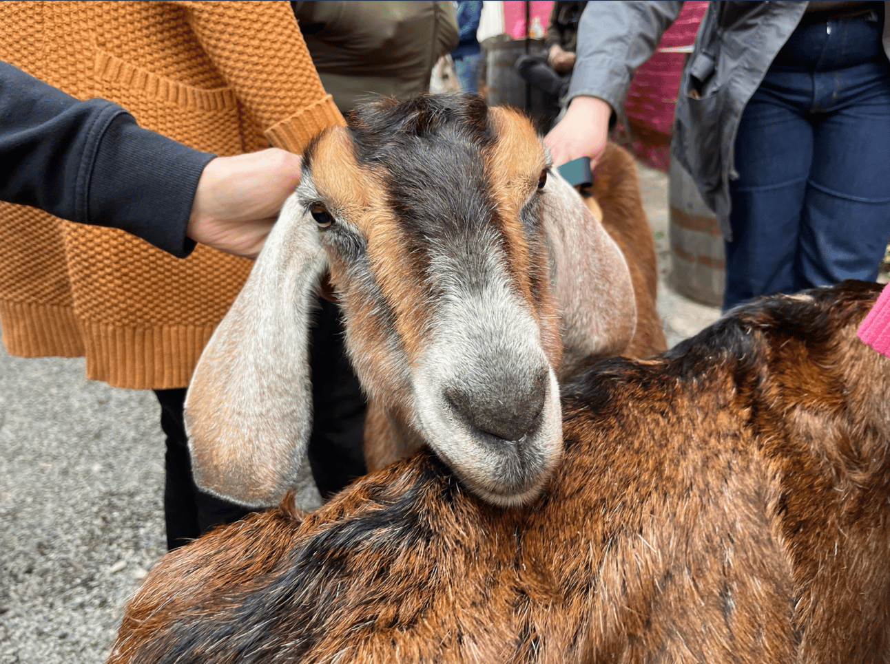 Occasionally the goats may get annoyed with another, wether its over food or personal space. However there aren’t any long standing feuds noted regularly, the goats get along quite well. To handle any goat disagreements the staff will temporarily separate them and calm them both down. The miniature donkeys also can assist with preventing fights because they make the goats feel safe. Every herd is lead by a donkey for which the herd is named after.